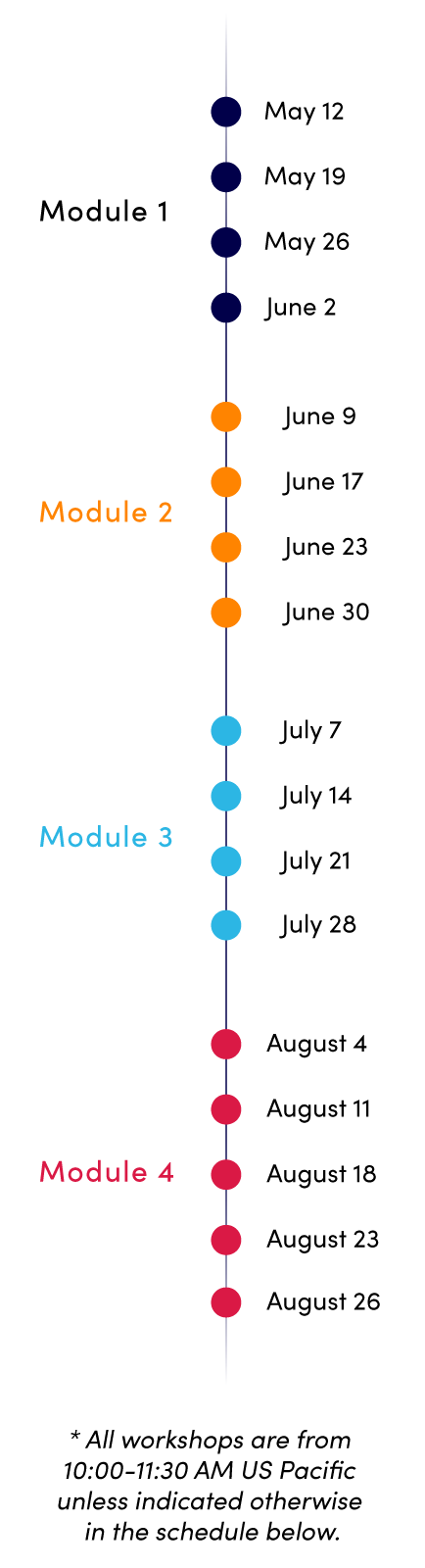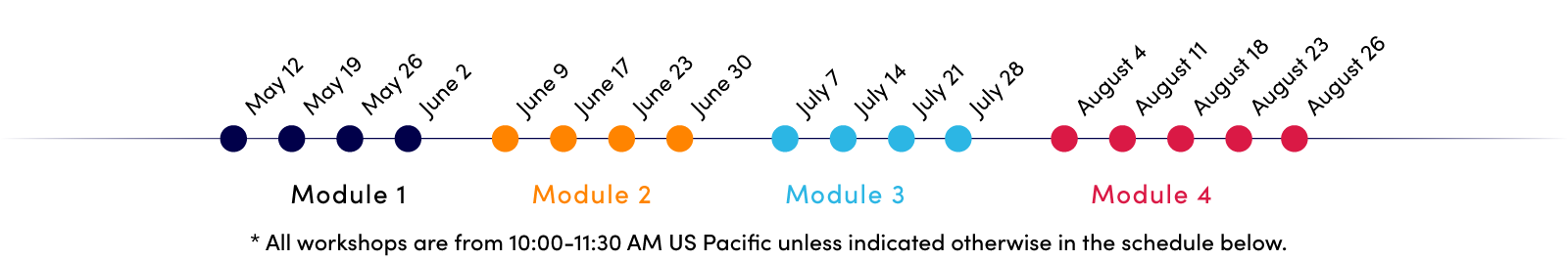 Use the buttons to expand the modules and see the entire workshop schedule and details.